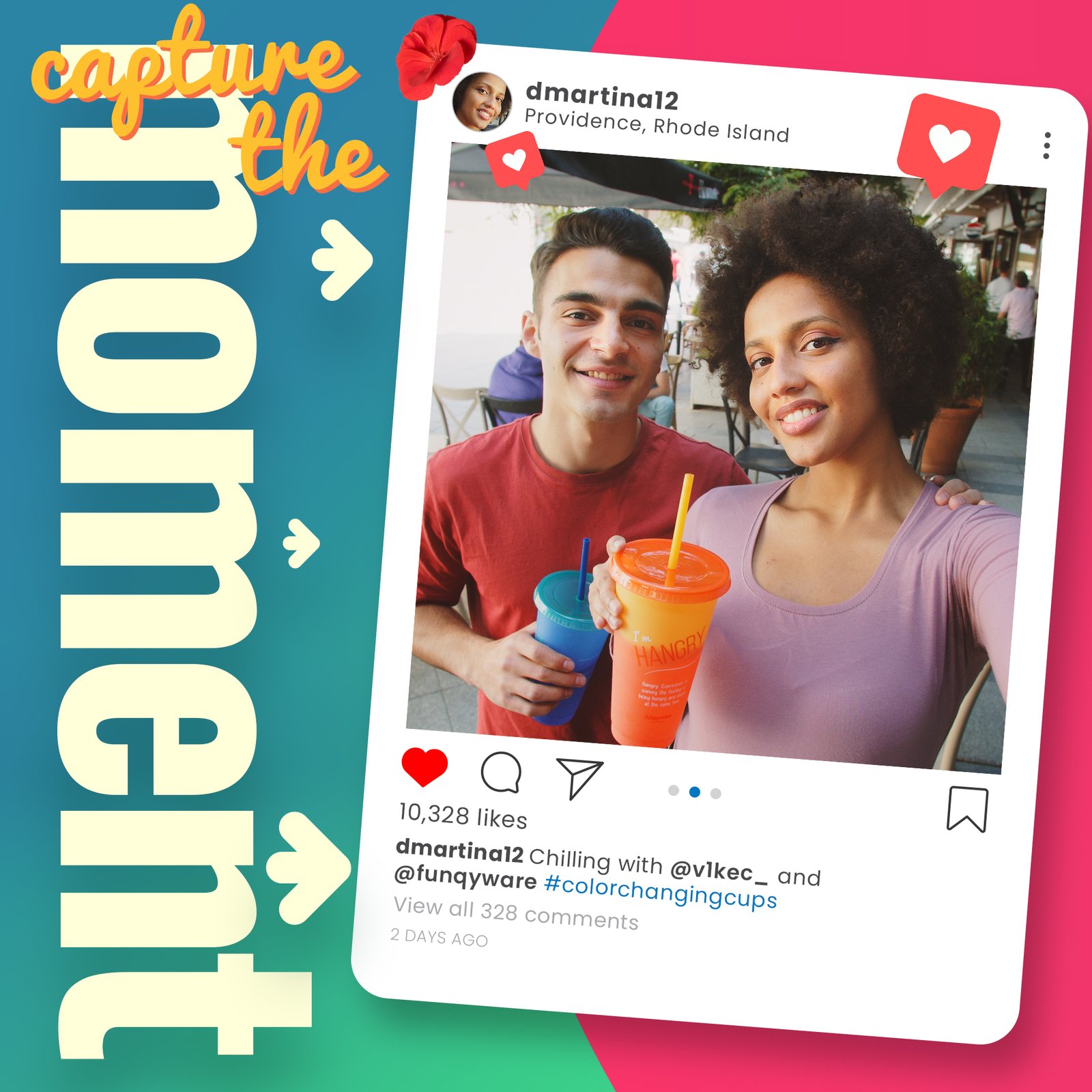 Vibrant and bold colour changing cups. Capture a memory and wow your friends.