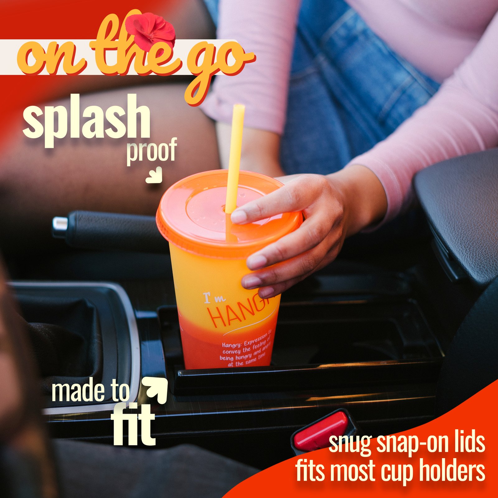 Snug snap on lids fit each cup securely. No mess on your clothes or in the car.